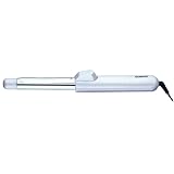 This 3/4" full size anodized aluminum barrel curling iron from Conair has an attractive pearlized handle.The Automatic curl release is precise and easy to use.Also for your convenience and safety, this curling iron has a cool tip, a ready dot, and swivel cord.